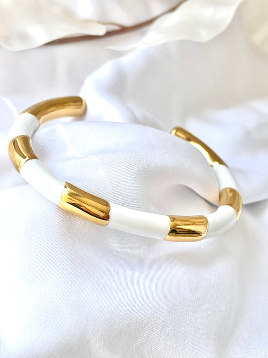 Marina Open Bangle - Gold/White