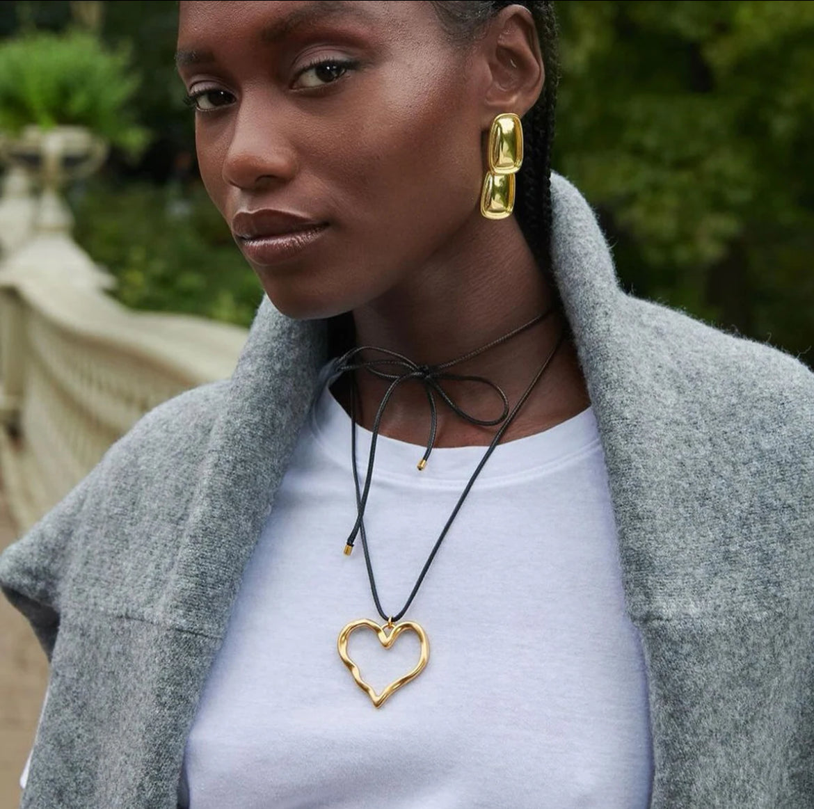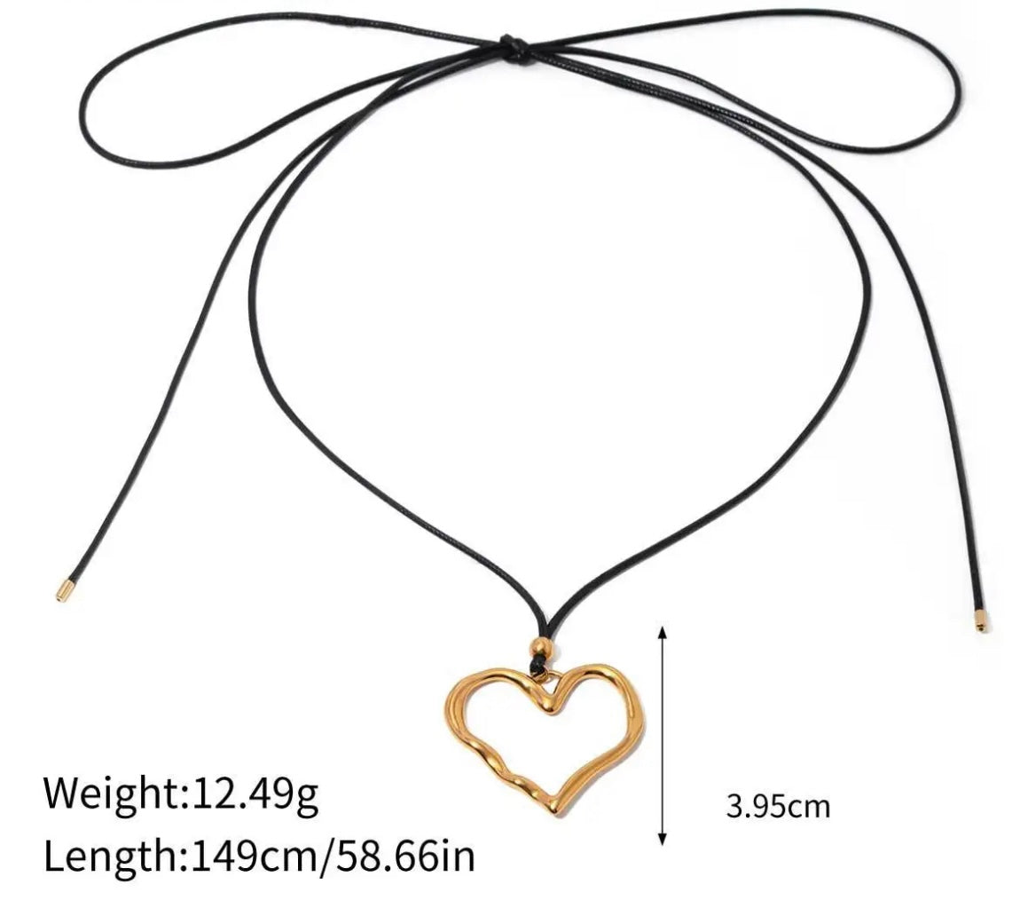 Indulge in the decadence of Darice Choker - a lavish heart suspended on a glossy black cord. This heart-shaped necklace, crafted with stainless and 18k gold stainless steel, offers versatility in styling options. From chic choker to effortless solo piece, and even modern layers, the dangling heart remains untarnished, exuding timeless elegance.